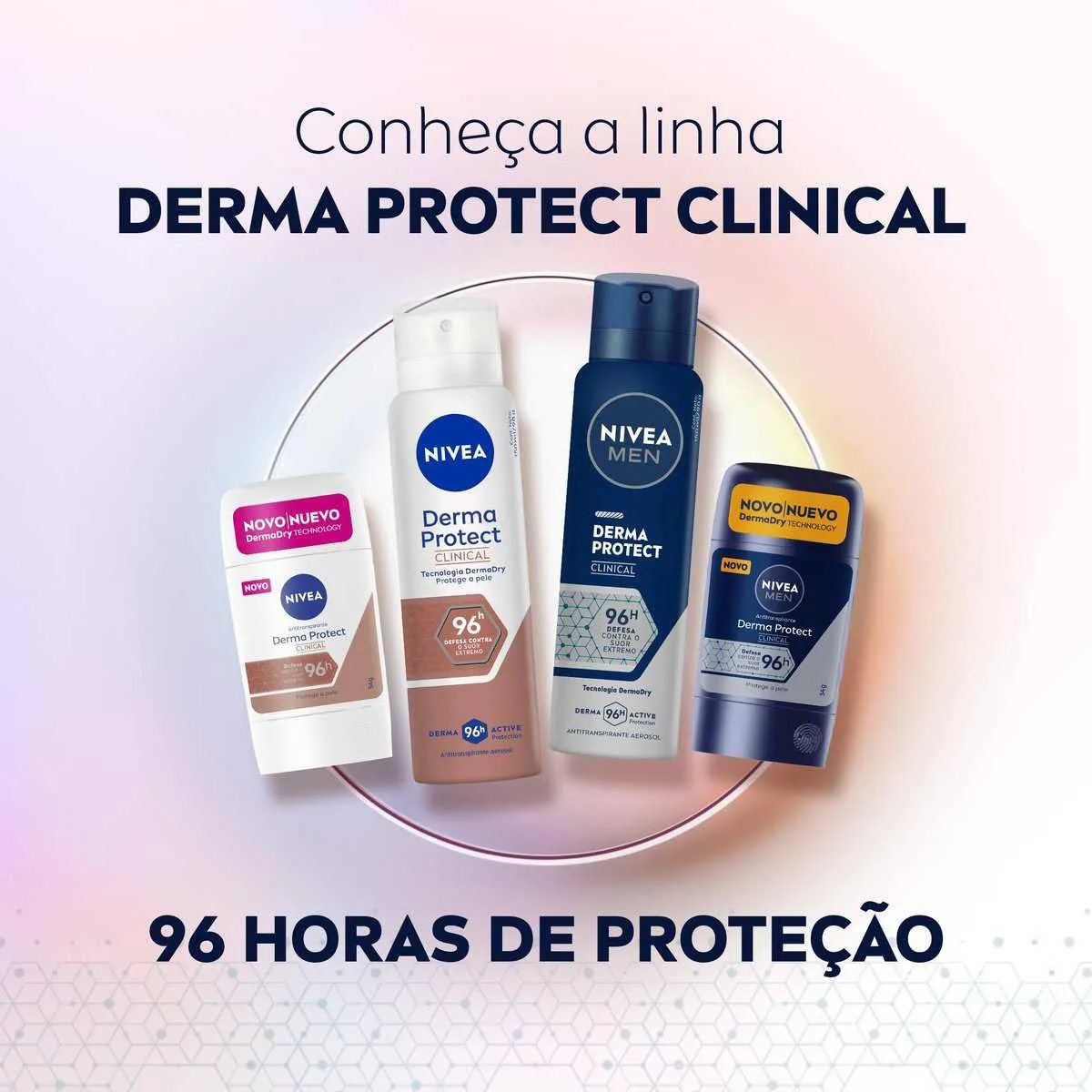 O Nivea Men Clinical Derma Protect é o antitranspirante mais forte da Nivea que protege a Pele. Ele oferece 96h de proteção contra suor excessivo e mau odor enquanto deixa sua axila suave, macia e sem irritação, a partir da tecnologia exclusiva Derma Dry.