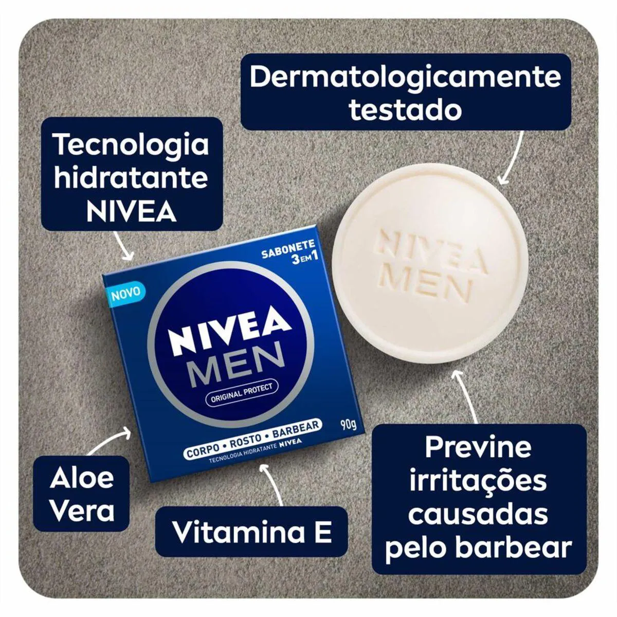 O Nivea Men Original Protect 3 em 1 é um sabonete em barra formulado especialmente para a Pele masculina, oferecendo limpeza, cuidado e proteção.