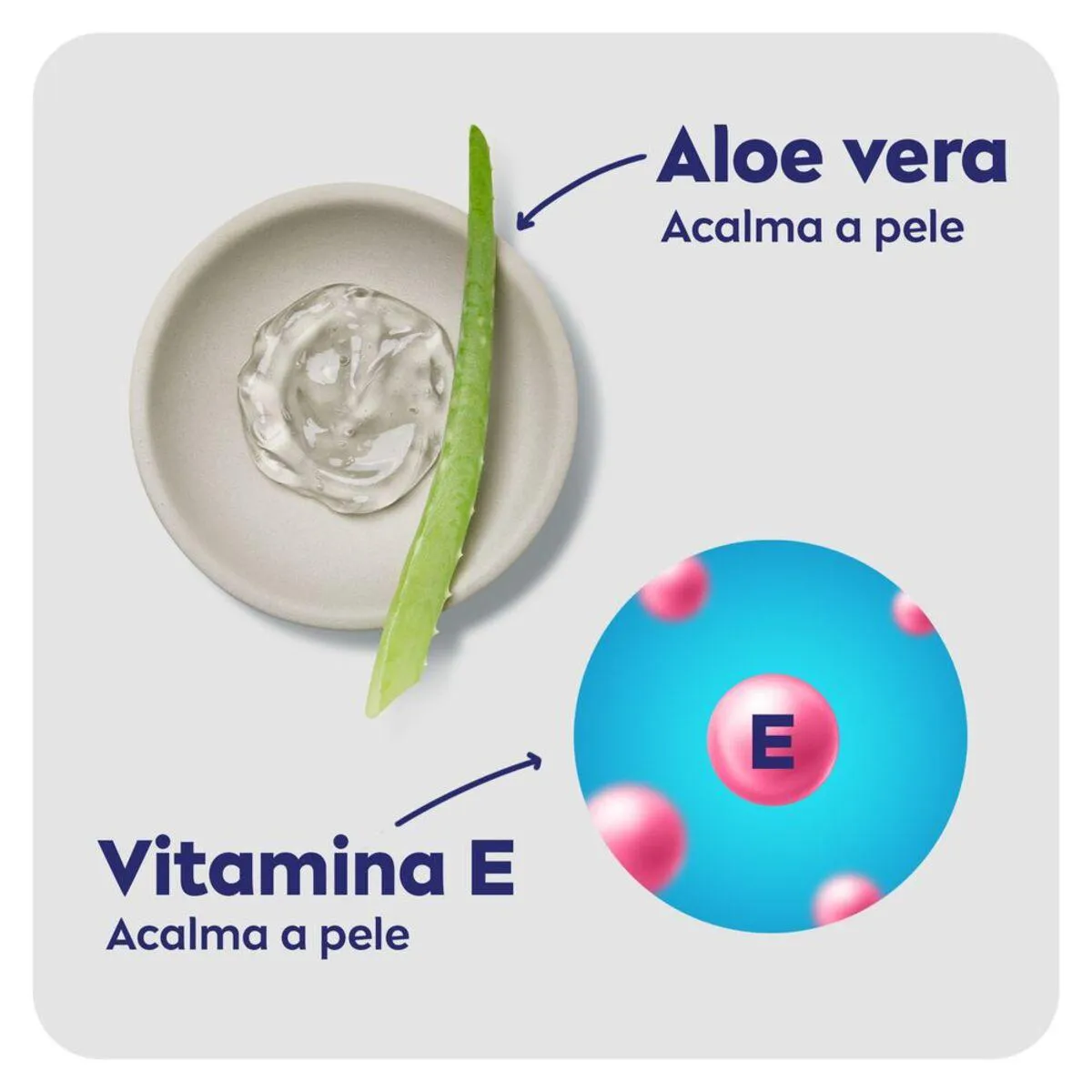 - Possui fórmula enriquecida com Aloe Vera e Vitamina E.