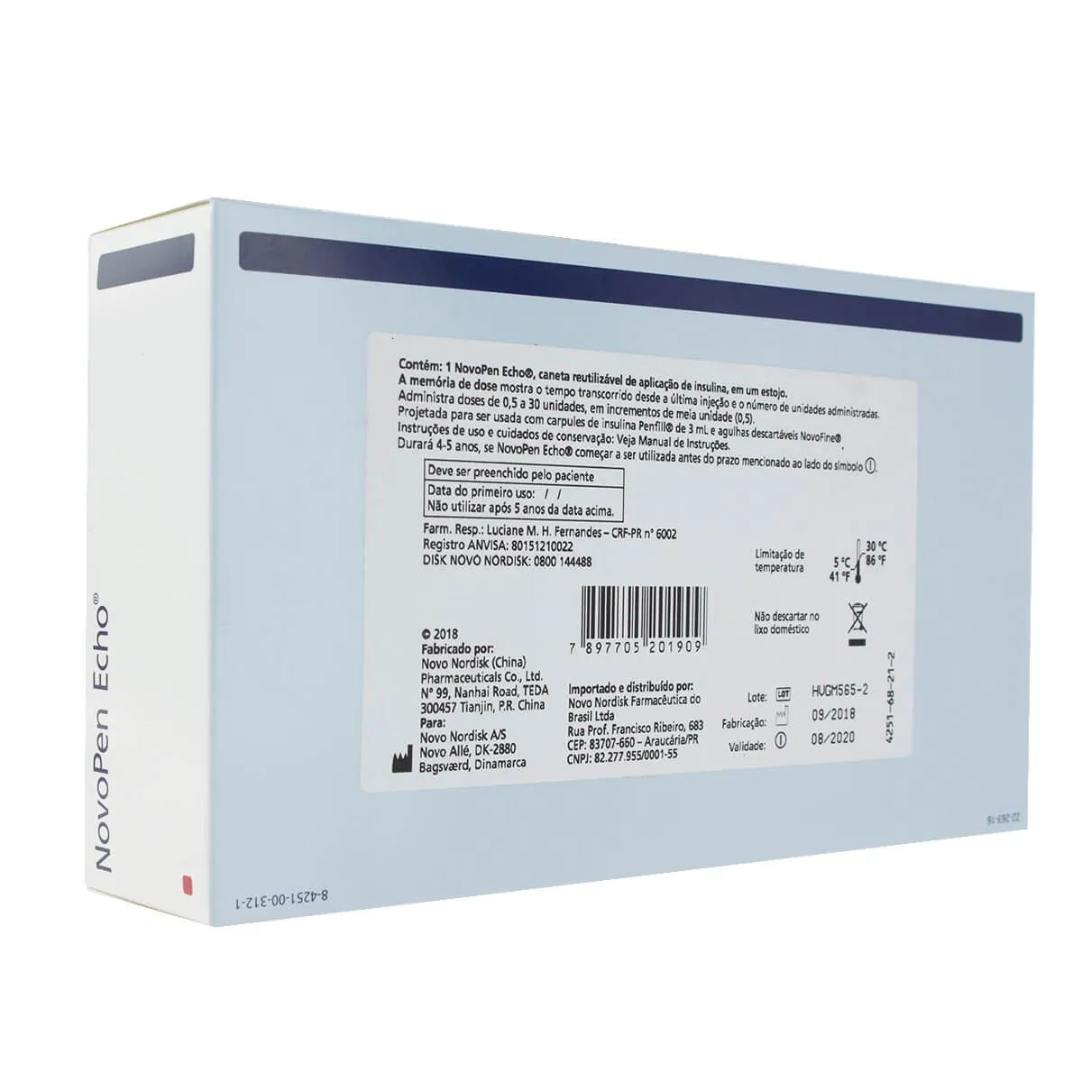 - Conteúdo da embalagem: 1 Caneta Aplicadora de Insulina Novopen Echo Red, 1 Estojo.