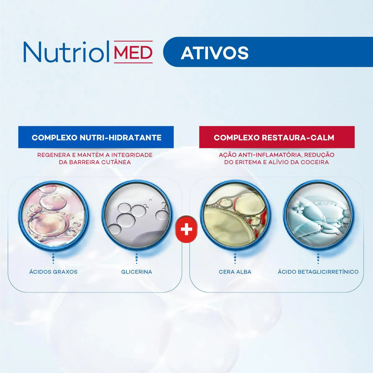 Restaura a barreira cutânea da pele e forma uma camada protetora sobre ela, protegendo-a das agressões externas e da perda de hidratação natural, que são característicos de peles mais sensíveis ou irritadas.