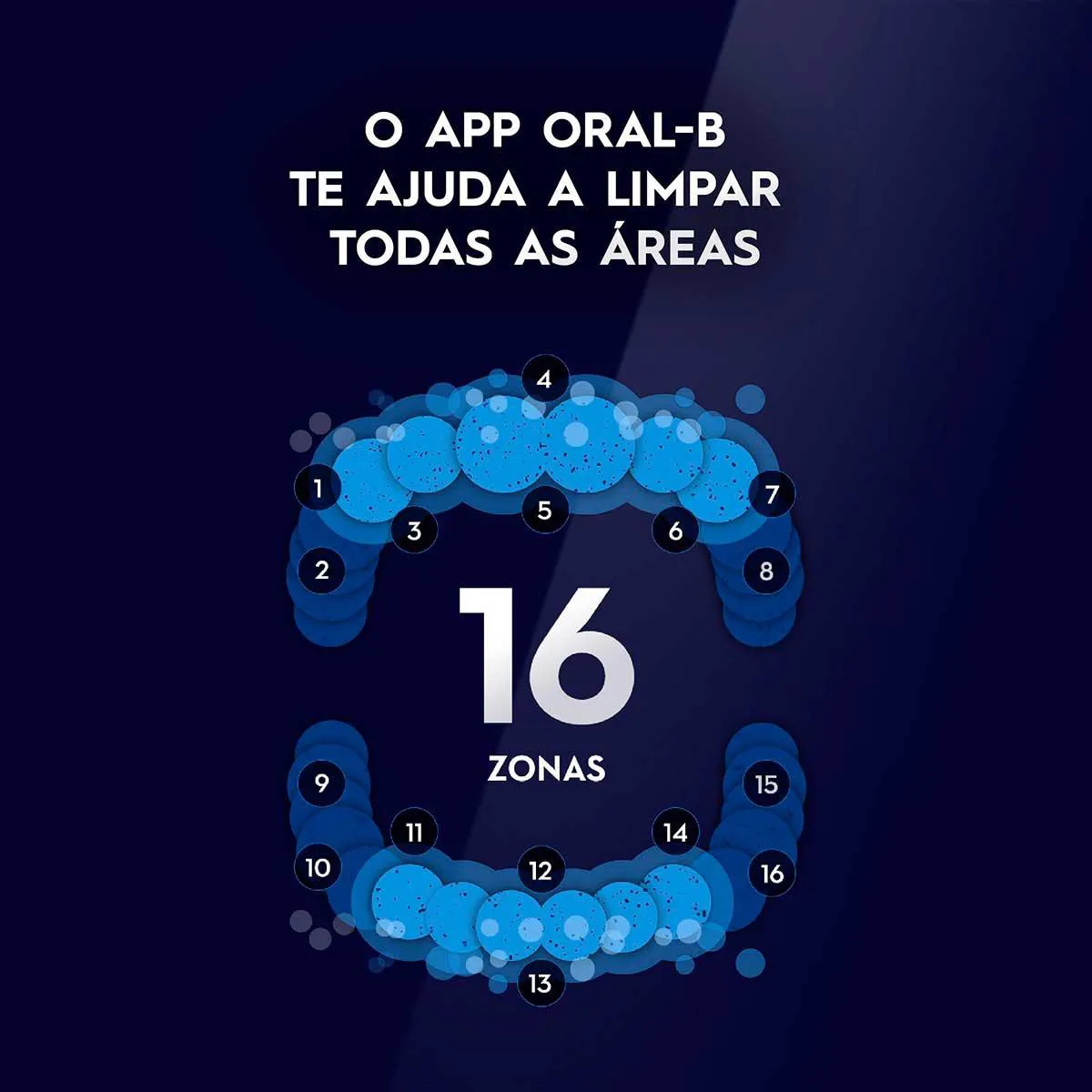 - Movimento em 3D que controla a escovação nas superfícies frontal, superior e traseira dos dentes.