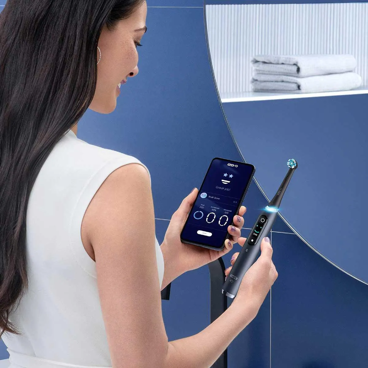 Com uma exclusiva cabeça redonda e micro vibrações suaves, a Oral-B iO9 garante sensação de frescor e limpeza na boca e gengiva, que devem ficar 100% mais saudáveis em uma semana.