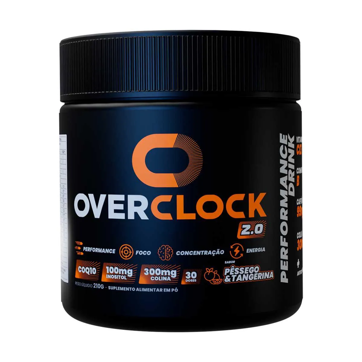 Suplemento Alimentar Overclock 2.0 Pêssego com Tangerina 210g pote 30 doses