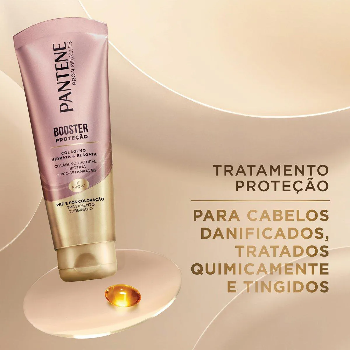 O Booster Proteção da linha Pantene Colágeno é um creme de Tratamento que hidrata profundamente os fios para as fases pré e pós coloração, desenvolvido especialmente para cabelos danificados, tingidos e quimicamente tratados.