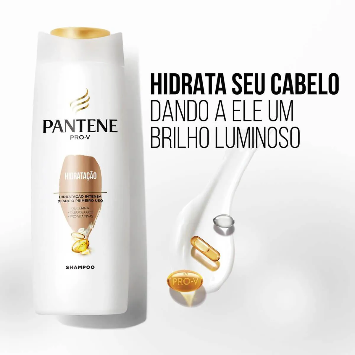 O Shampoo Pantene Pro-V Hidratação contém a exclusiva fórmula Pantene Pro-V, com adição de Óleo de Coco e Glicerina, para limpar e hidratar os seus cabelos com ingredientes cuidadosamente selecionados (sem adição de sal e sulfatos).