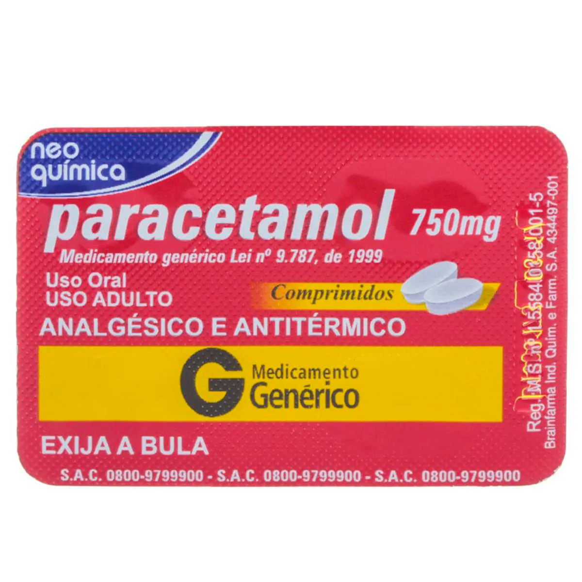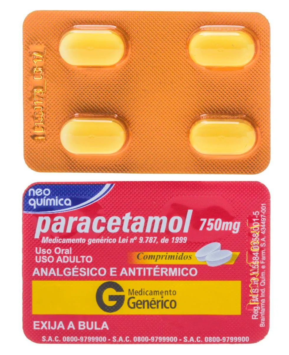 Paracetamol 750mg 4 comprimidos Neo Química Genérico