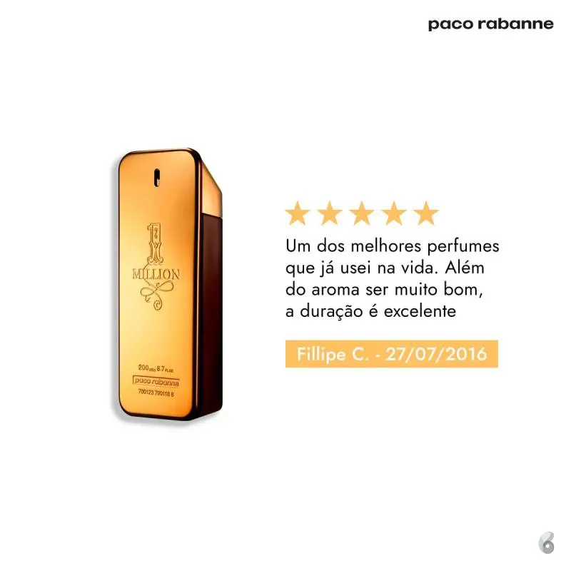 1 Million Eau de Toilette Paco Rabanne perfume masculino é uma fragrância para os homens  modernos.