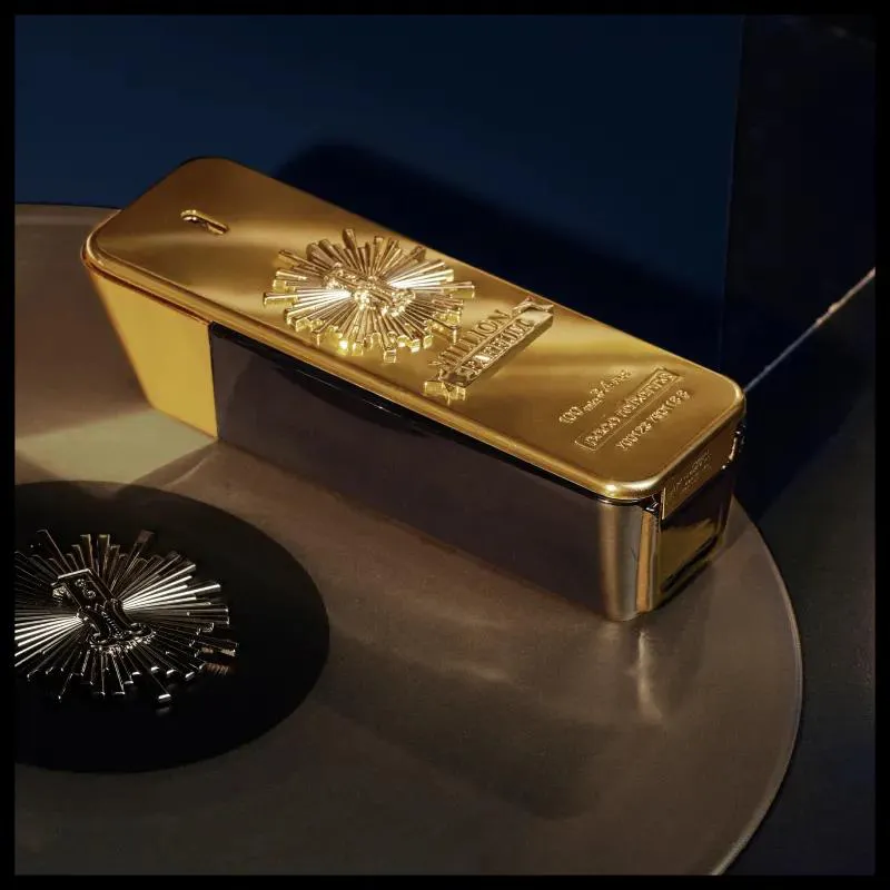 O frasco de 1 Million Parfum é sublime e exagerado como sua fragrância. O formato icônico de uma barra de ouro da linha 1 Million, que combina o dourado iluminado e brilhante com o vidro âmbar. Um novo emblema esculpido no metal para quem quer saber como se tornar 1 Million entre milhões: o emblema do sucesso, o sol!   **PRODUTO 100% ORIGINAL E COM SELO ADIPEC**Notas de Topo: Tuberosa, Sal, Pinheiro e Cashmere. Notas de Coração: Couro. Notas de Fundo: Óleo de Monoi, Ambargris e Ládano.   *As cores do produto podem variar de acordo com o monitor, a iluminação do ambiente e a sua percepção visual.*