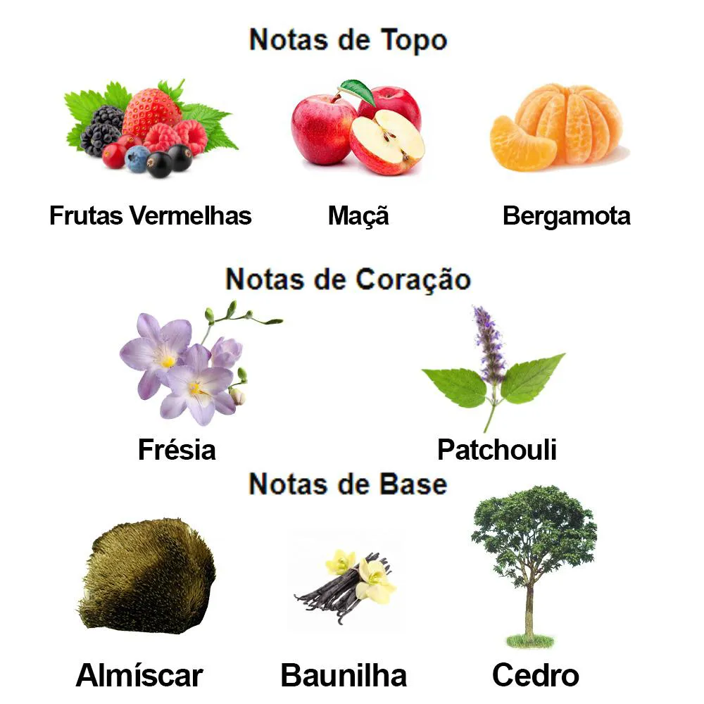 Notas de Base: Âmbar tonka doce, Cacau e Âmbar