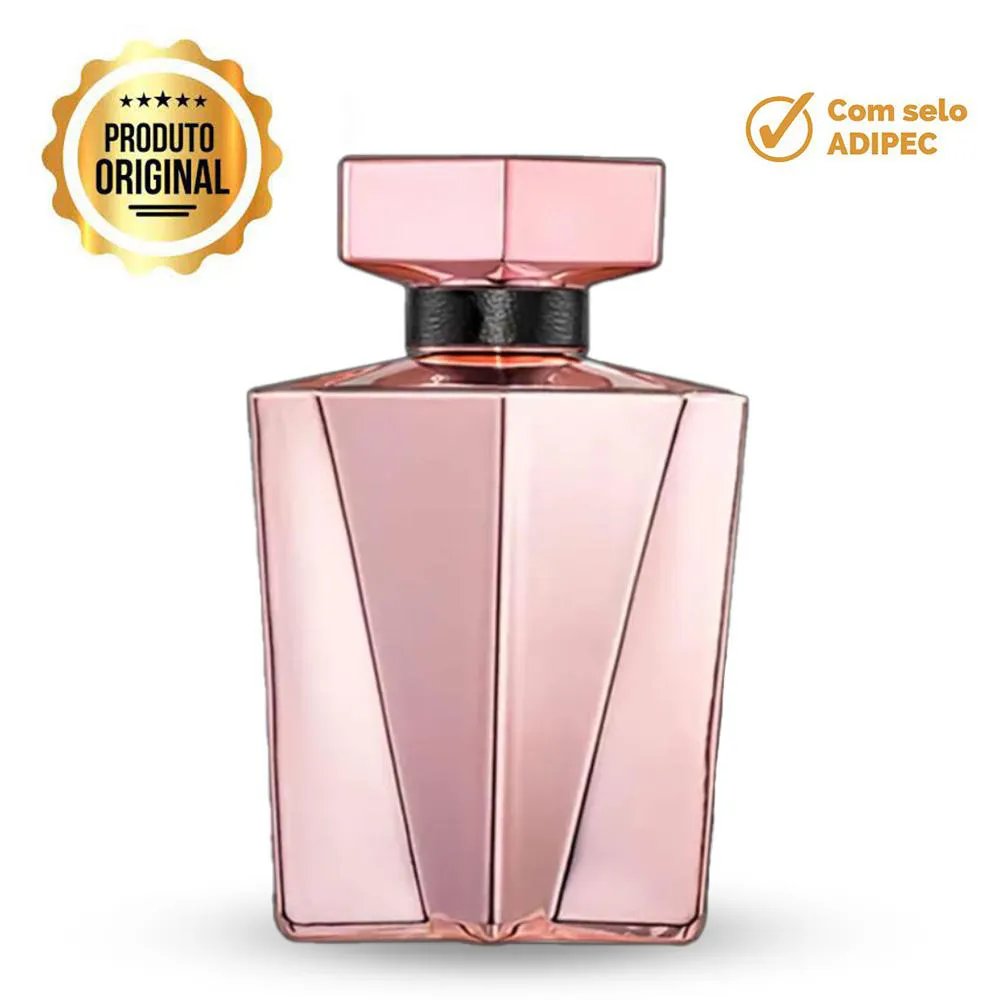 Um perfume irresistível, mantido em um frasco de linhas retas e facetadas, representando as diferentes fases dessa mulher, além disso, a cor rose gold é envolvente e sofisticada.