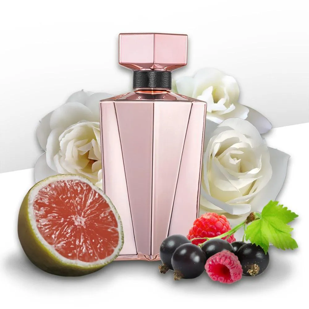 Um perfume que se abre com uma nota profunda do suculento cassis, inspirado com doces tons de toranja e framboesa fresca.