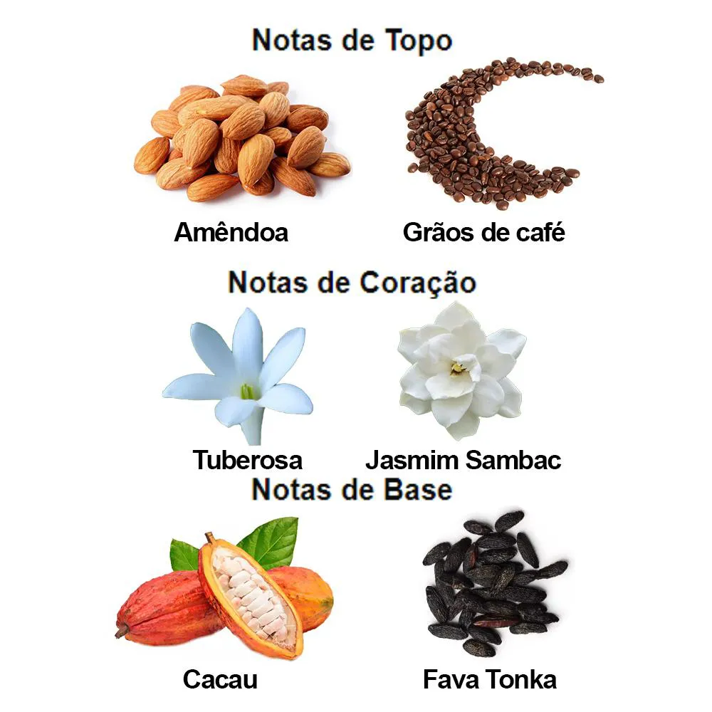 Notas de Topo: Amêndoa encantada e grãos de café