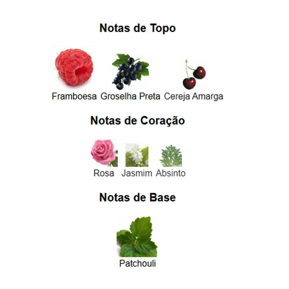 Notas de Coração: Rosa, Jasmim e Absinto.