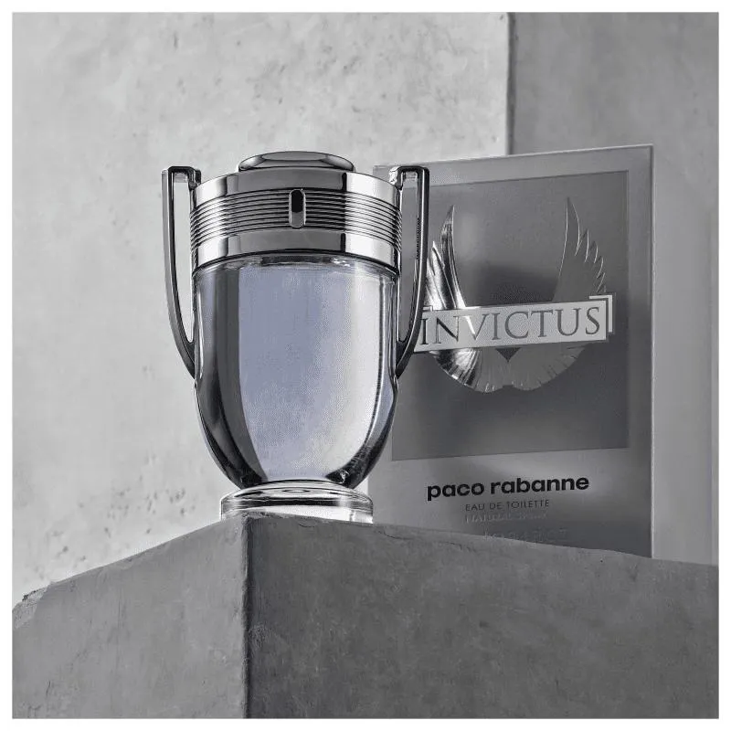 eu único objetivo é a vitória. Paco Rabanne Invictus é uma fragrância Amadeirada Aquática que inspira segurança, poder e dinamismo, traduzindo a masculinidade forte e moderna.