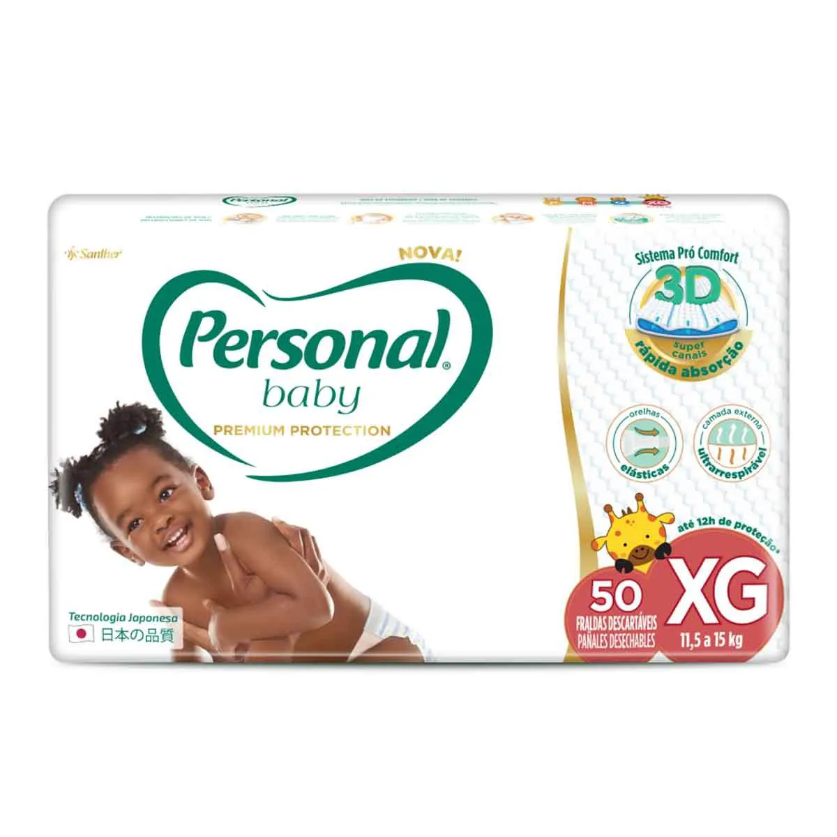 Desenvolvida com a mais alta Tecnologia Japonesa, que garante o máximo cuidado e conforto para os bebês brasileiros, a Fralda Personal Baby Premium Protection é um modelo que conta com o exclusivo Sistema Pró Comfort 3D com super canais de alta absorção que absorvem rapidamente o xixi mantendo-o longe da Pele do bebê.