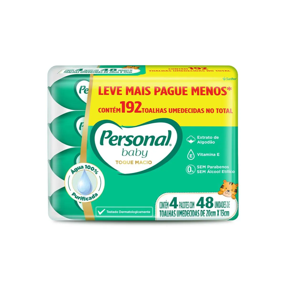 Toalha Umedecida Personal Baby Toque Macio 4 pacotes com 48 unidades cada
