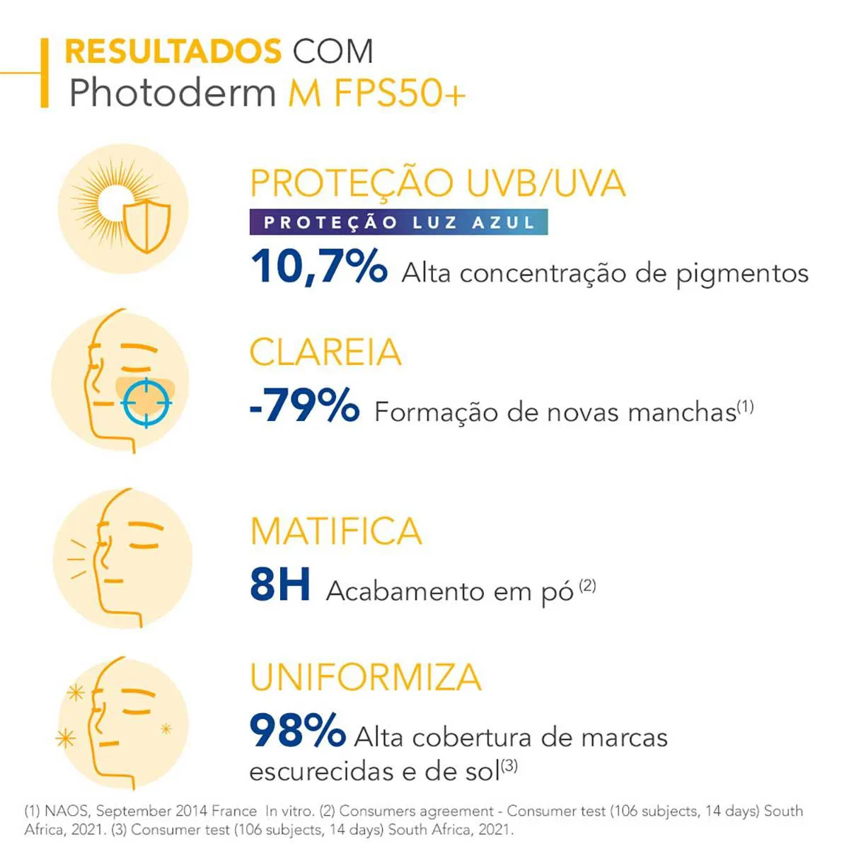 Photoderm M é um protetor solar facial com cor que, além de proteger a Pele contra os danos causados pelo sol, oferece cobertura natural e ajuda no clareamento de manchas do rosto.