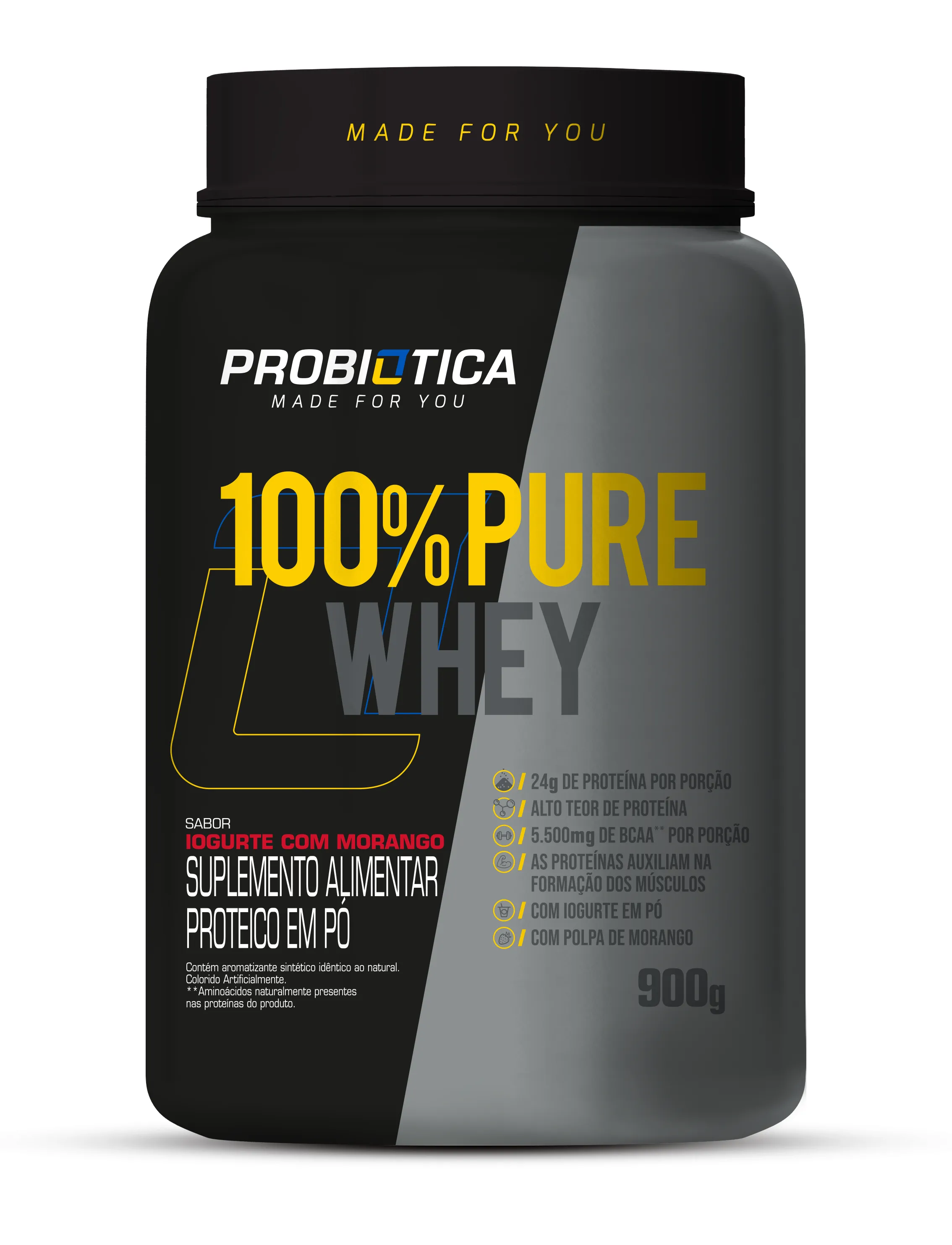 O 100% Pure Whey Probiotica é um suplemento alimentar em pó, desenvolvido especialmente para atletas e praticantes de atividade física, que pode ser tomado antes e/ou após os exercícios, ou em refeições que se deseja obter aporte proteico.