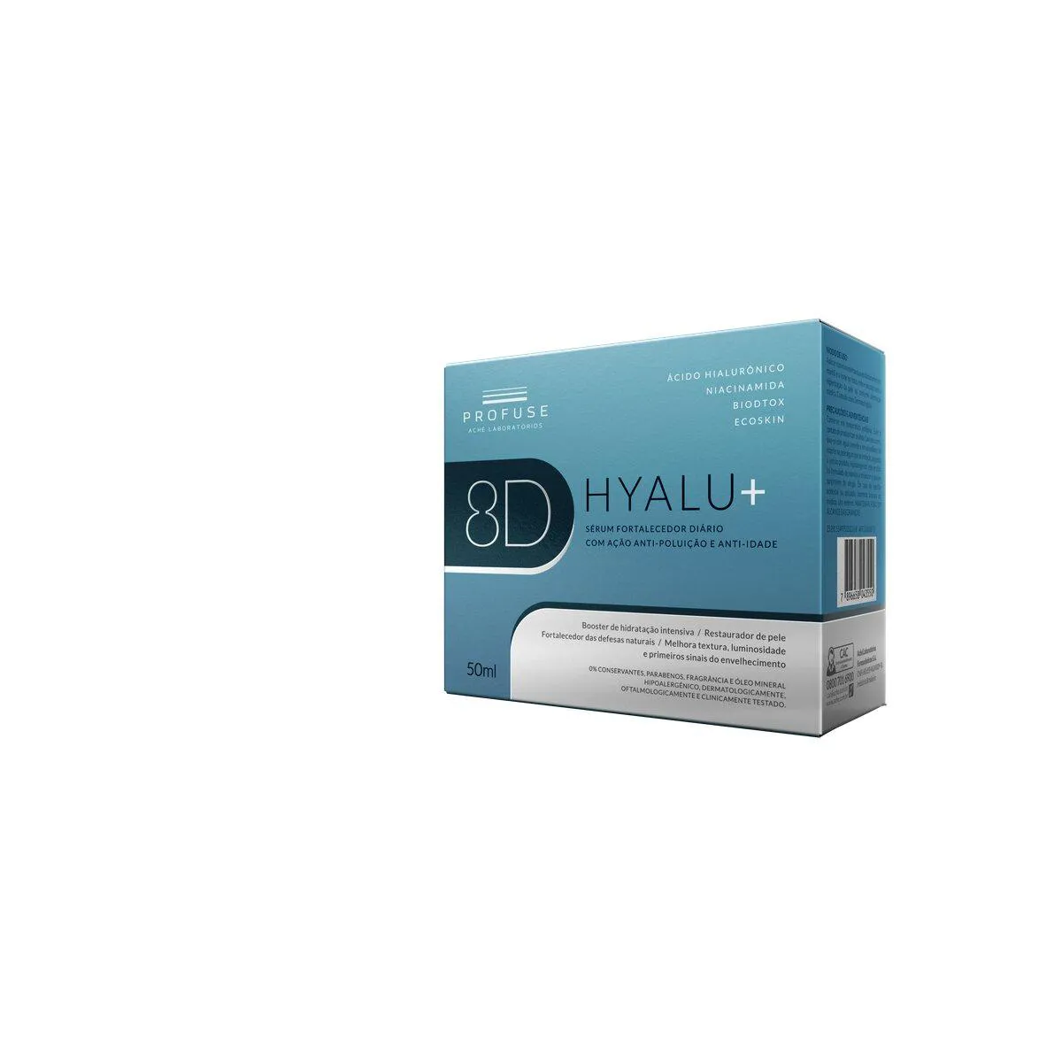 Profuse 8D Hyalu+ é um sérum fortalecedor diário que traz em sua formulação 8 diferentes tipos de ácido hialurônico, com alto poder hidratante, o ativo BioDtox com ação antipoluição, combatendo a oxidação gerada pelos poluentes ambientais, o complexo Ecoskin com ação pré e pós biótica e a Niacinamida, ativo consagrado nos Cuidados com a Pele.
