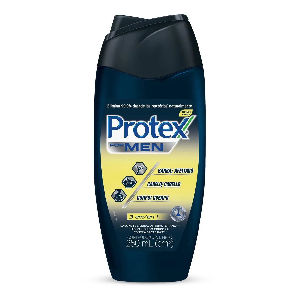 O Sabonete Líquido Corporal Protex Men 3 em 1 cria uma barreira de proteção que ajuda a prevenir a proliferação de até 99,9% das bactérias para a boa Saúde da sua pele.