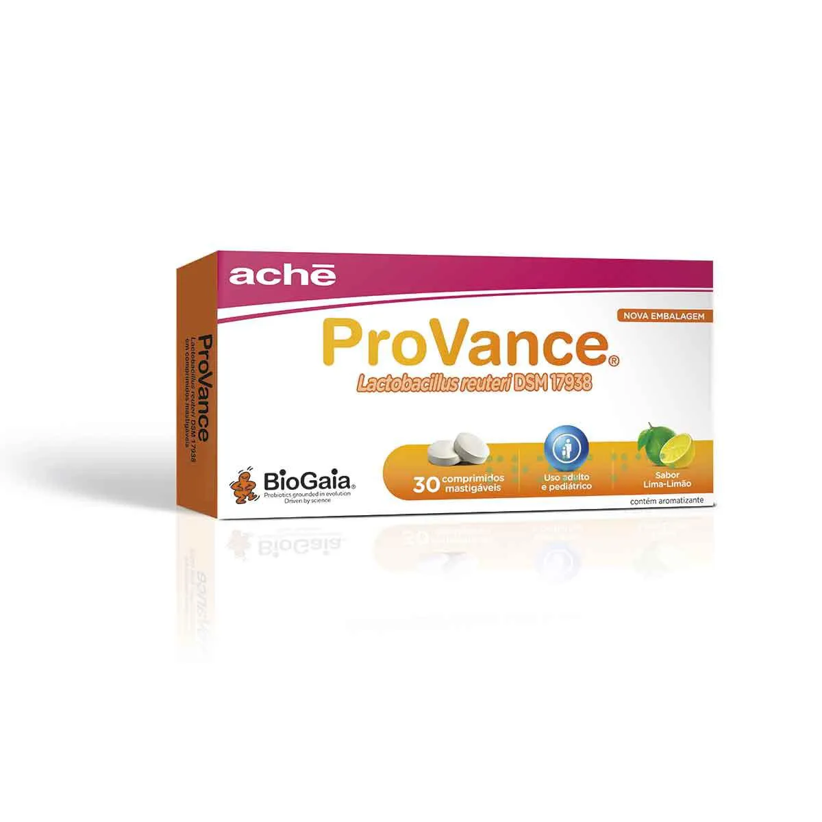 A ingestão de 1 comprimido mastigável de ProVance fornece 108 UFC (100.000.000 de Unidades Formadoras de Colônias) de Lactobacillus Reuteri DSM 17938 vivos.