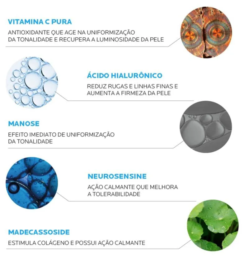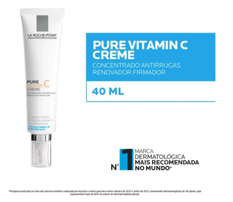 Creme Redutor de Linhas para todos os tipos de Pele. La Roche-Posay Pure Vitamin C preenche rugas profundas, melhora a firmeza e uniformiza o tom. Ele possui uma fórmula antienvelhecimento completa que estimula a produção de colágeno e, assim, deixa a pele mais lisa e redensificada. La Roche-Posay Pure Vitamin C ainda combate os sinais do tempo com seu efeito antioxidante, que neutraliza os radicais livres que danificam a pele e provocam o envelhecimento precoce. Seu poder de equilibrar a hidratação suaviza rugas. O creme tem uma textura aveludada não oleosa, dá uma sensação de frescor e é confortável.