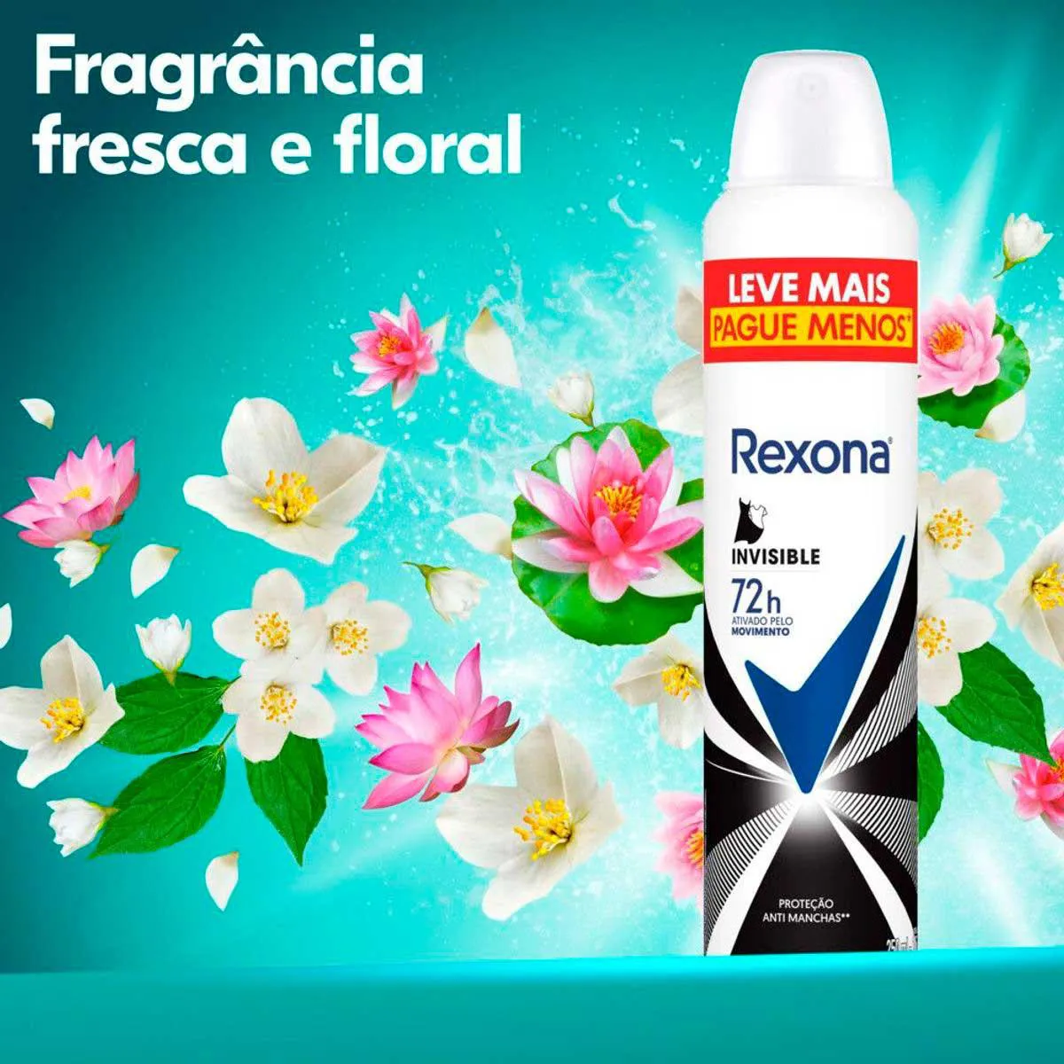 O Rexona Invisible é um Desodorante aerossol feminino que protege a sua roupa contra manchas brancas e amarelas, além de contar com Tecnologia MotionSense: composta por exclusivas microcápsulas que são quebradas pelo atrito dos movimentos, liberando proteção extra ao longo do dia.