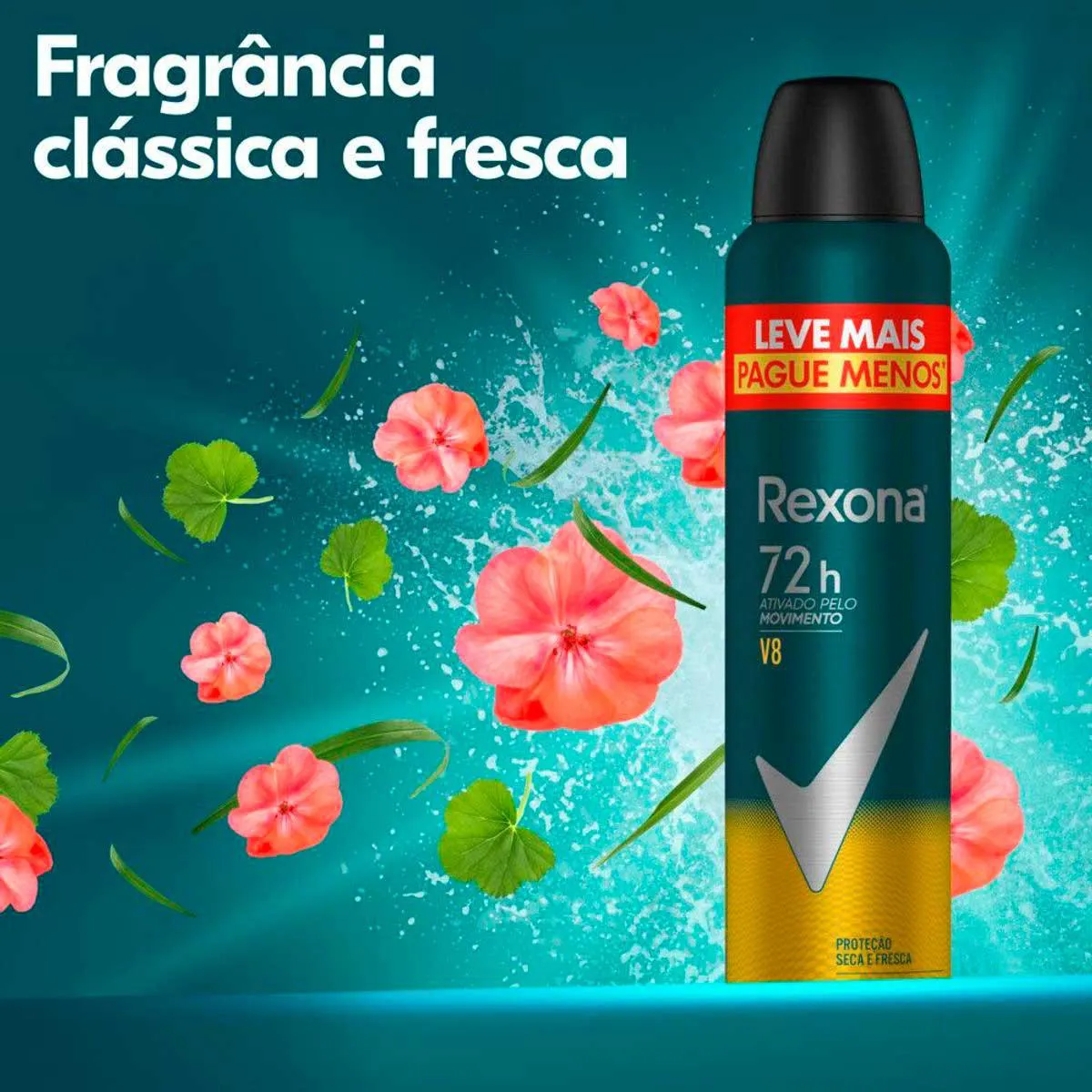 O Rexona Men V8 é um Desodorante aerossol com fragrância de Notas Verdes e Amadeiradas. Sua fórmula conta com Tecnologia MotionSense: composta por exclusivas microcápsulas que são quebradas pelo atrito dos movimentos, liberando proteção extra ao longo do dia.