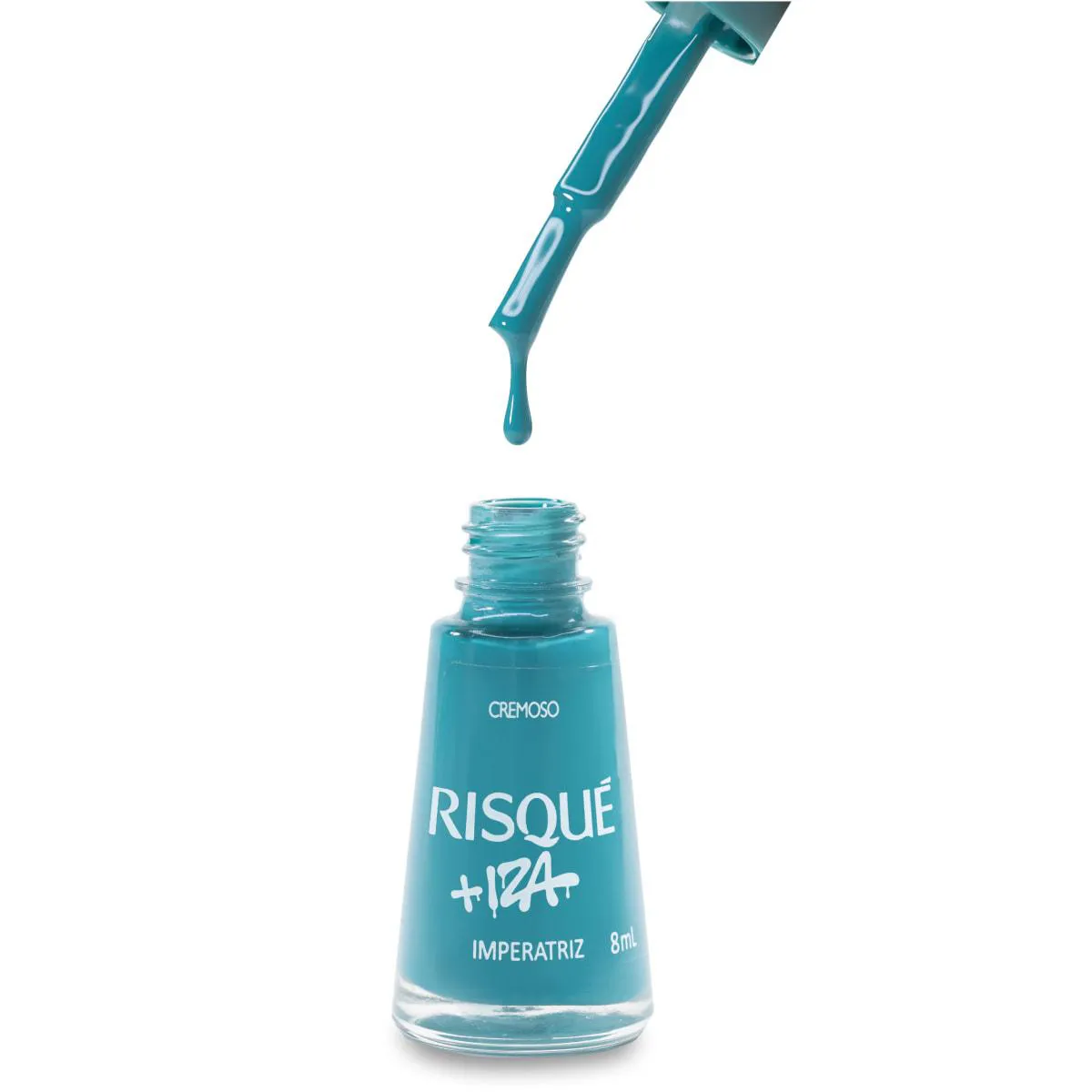 O Esmalte Cremoso Risque Imperatriz faz parte da nova coleção Risqué + Iza, a dona da voz dos hits Pesadão, Ginga e Brisa. Possui textura cremosa e coloração verde água. Sua fórmula é hipoalergênica, livre de substâncias que causam alergia.