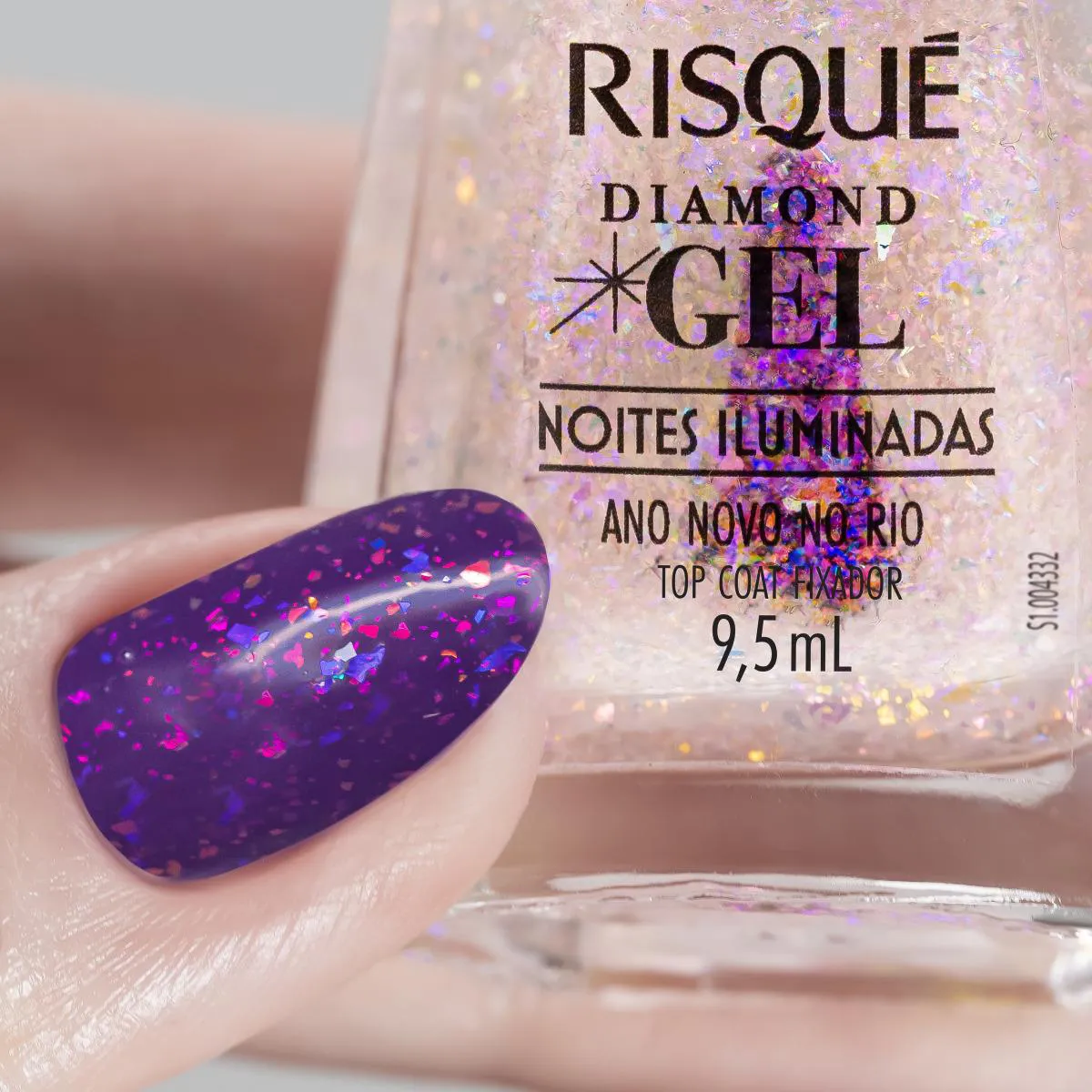 Esmalte Top Coat Fixador Risqué Diamond Gel Noites Iluminadas - Ano Novo no Rio 9,5ml