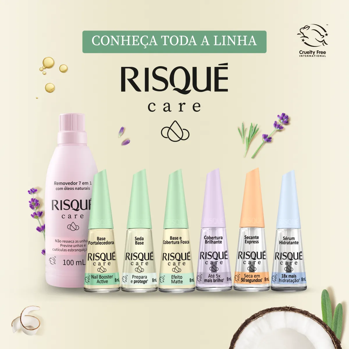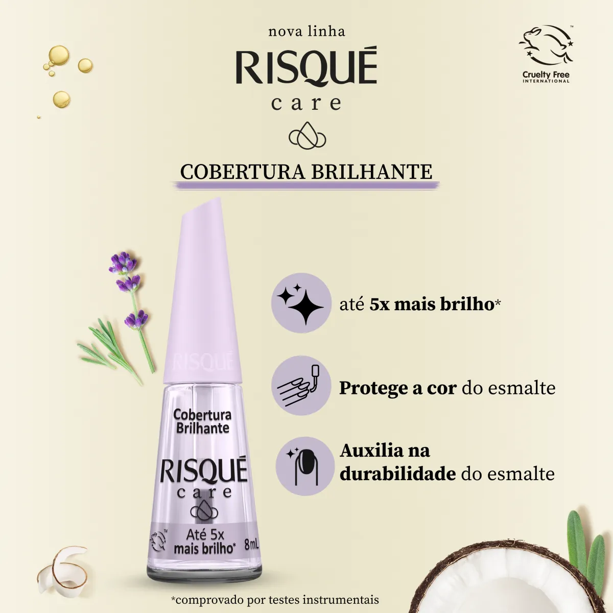 Risqué Technology Cobertura Brilhante é um brilho para unhas feito para deixar as suas unhas com um acabamento perfeito após a esmaltação. Protege o esmalte, dá um tom mais moderno e deixa as suas unhas brilhantes e incríveis por até 7 dias. Produto hipoalergênico (formulado para minimizar o possível surgimento de alergia).