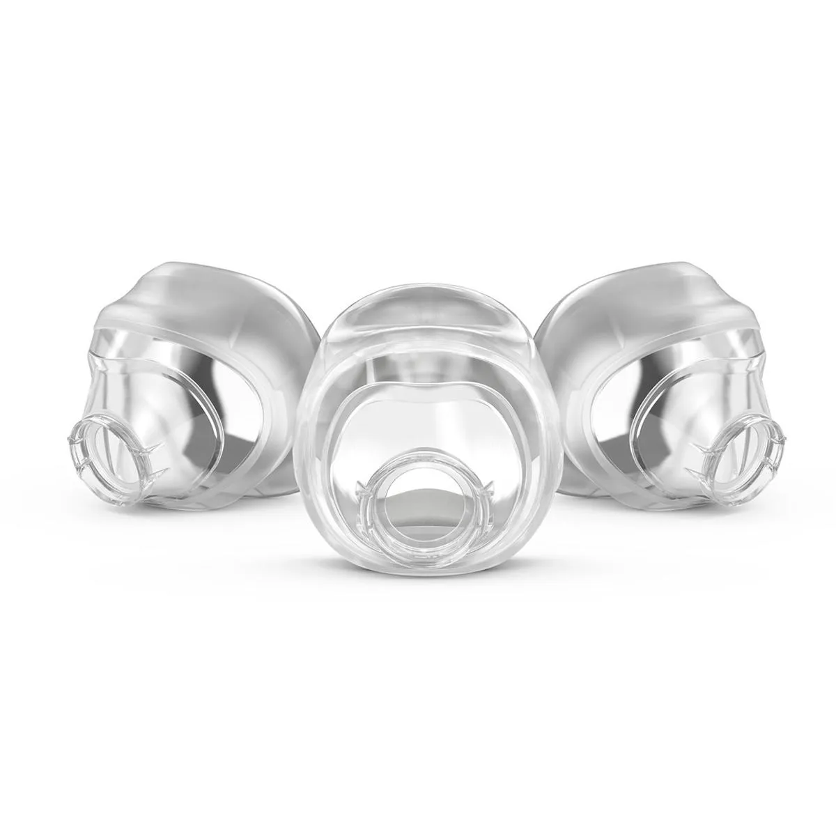A estrutura é a mesma para os três tamanhos de almofada. Portanto, se você utiliza um tamanho, poderá comprar outro tamanho e encaixar na mesma estrutura de máscara.