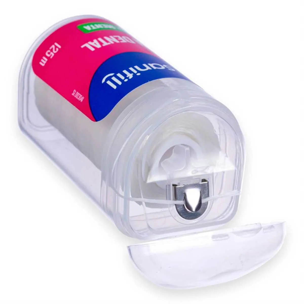 A Fita Dental Sanifill tem maior espessura, proporcionando maior área de limpeza, sendo mais resistente ao desfiamento.