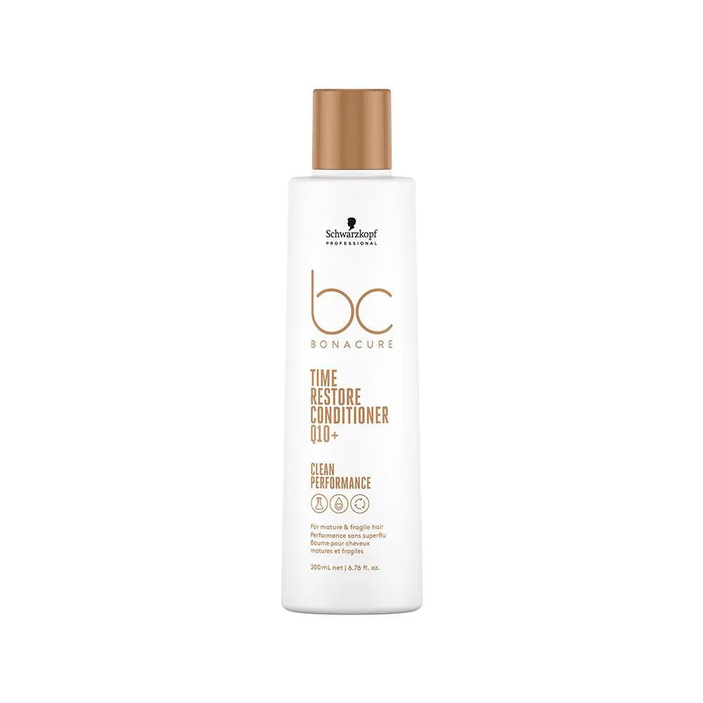 Condicionador Schwarzkopf Professional BC Bonacure Time Restore desembaraça e condiciona o cabelo. Ajuda a reduzir os sinais visíveis de envelhecimento dos fios, melhora a maleabilidade e adiciona brilho. Ajuda a fortalecer o cabelo e melhorar a capacidade de gestão, fornece elasticidade, força e vitalidade, proporciona uma sensação de cabelo hidratado até 48 horas. * SUGESTÕES DE USO: 1.Aplicar no cabelo limpo e úmido; 2.Distribuir e deixar agir por até 2 minutos; 3.Enxaguar completamente. * OBSERVAÇÕES: Imagem Meramente Ilustrativa * ITENS INCLUSOS: 1 Schwarzkopf Professional BC Bonacure Time Restore Condicionador 200ml