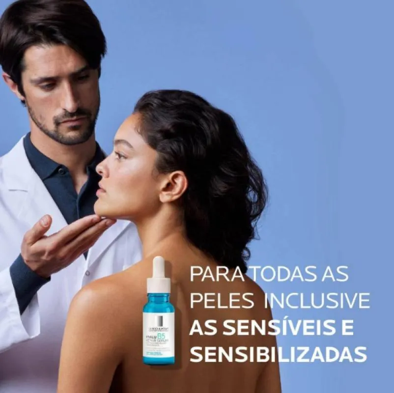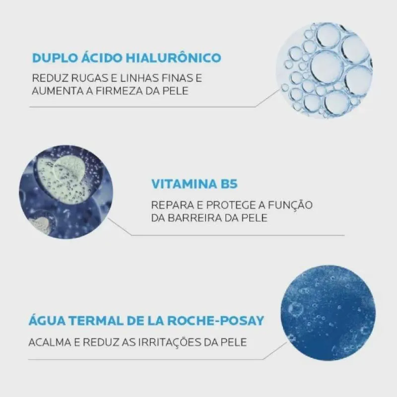 Além de reduzir as rugas, recupera a elasticidade e volume, melhora o viço e a luminosidade com uma textura sérum aqua gel refrescante, adaptada para peles sensíveis. Estimulando a síntese de colágeno, La Roche-Posay Hyalu possui Vitamina B5 que repara a barreira cutânea e age como um potencializador de eficácia combatendo a microinflamação.