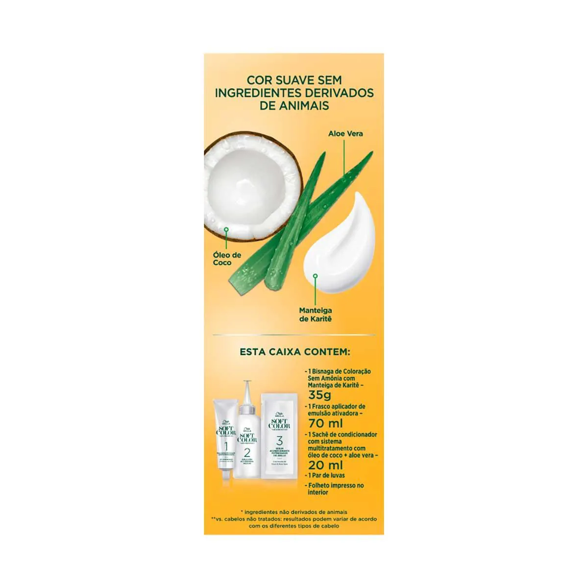 Indicado para todos os tipos e texturas de cabelo, inclusive os virgens, os já tingidos e os quimicamente tratados, a tintura Wella Soft Color possui fórmula enriquecida com Manteiga de Karité, Óleo de Coco e Aloe Vera que, além de colorir os fios, cria reflexos com brilho radiante e oferece cuidado e proteção, proporcionando 90% menos quebra do cabelo.