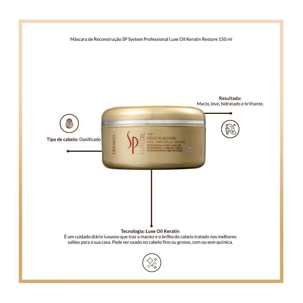Máscara de Tratamento Intensivo em Tamanho Salão, Para Todos Os Tipos de cabelo, Principalmente Os Fracos, Danificados e Secos. o Wella Sp Luxe Oil Keratin Restore Mask Age Na Reconstrução Das Fibras Capilares Para Que Fiquem Fortalecidas e Restauradas. Sua Fórmula Possui Ingredientes Que Hidratam e Nutrem Para Que a Textura Dos Fios Fique Macia, com Vitalidade e Brilho. Seu Cabelo Fica Forte, Saudável, Brilhante e Sedoso.