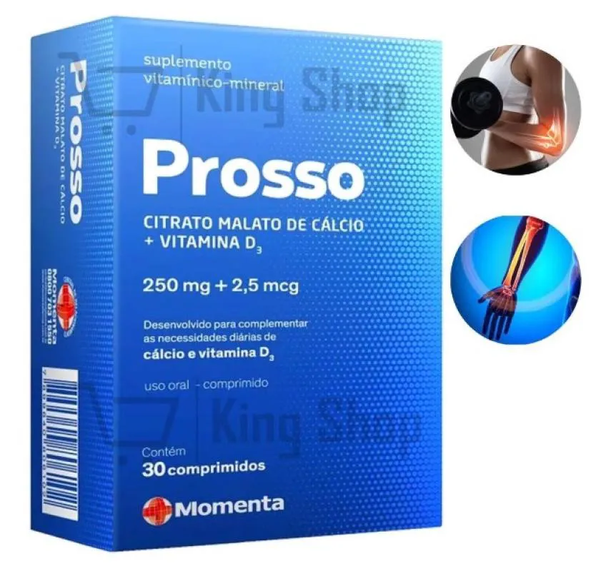 Prosso é um suplemento vitamínico e mineral para complementar as necessidades nutricionais de cálcio e vitamina D de adultos.