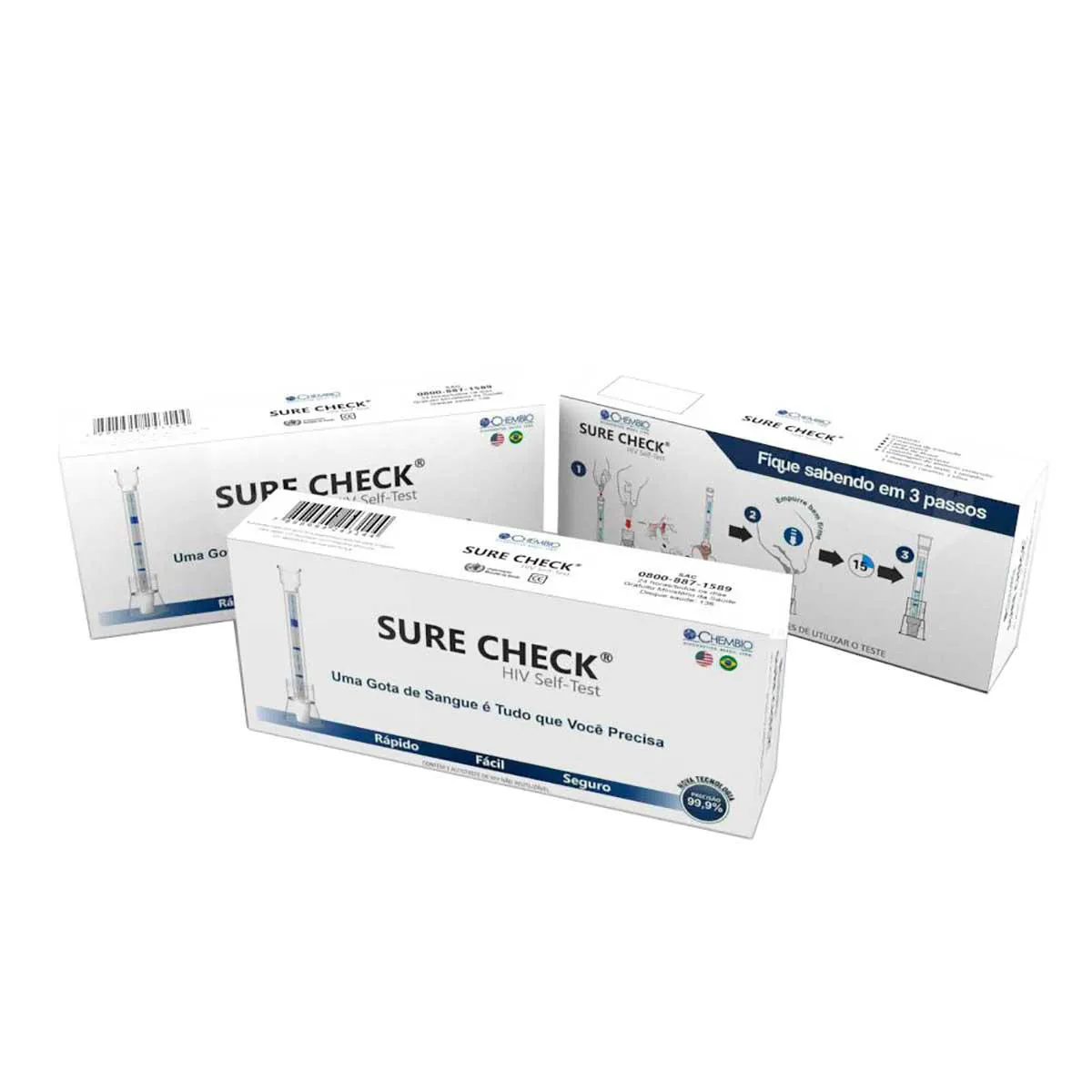 O Sure Check é um autoteste de uso único aprovado pela ANVISA para detecção de anticorpos para HIV-1 e HIV-2 em sangue total por punção digital.