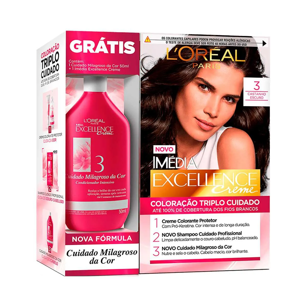 Imédia Excellence é a coloração permanente da L'Oréal que oferece um triplo cuidado: