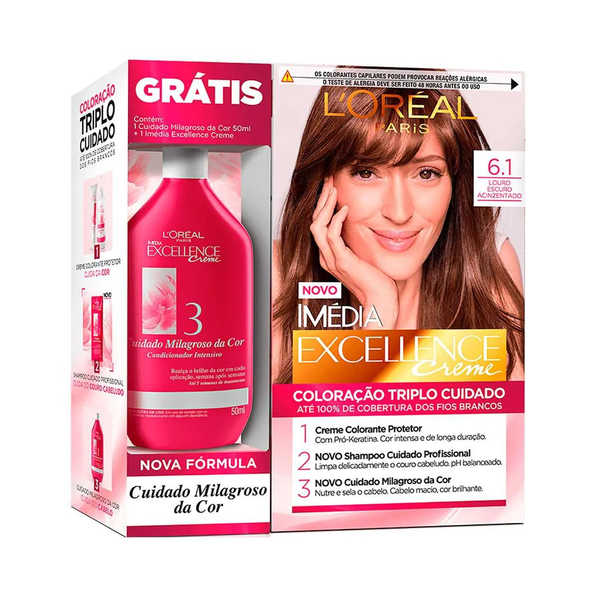 Benefícios e diferenciais da tintura Imédia Excellence Creme 6.1 Louro Escuro Acinzentado
