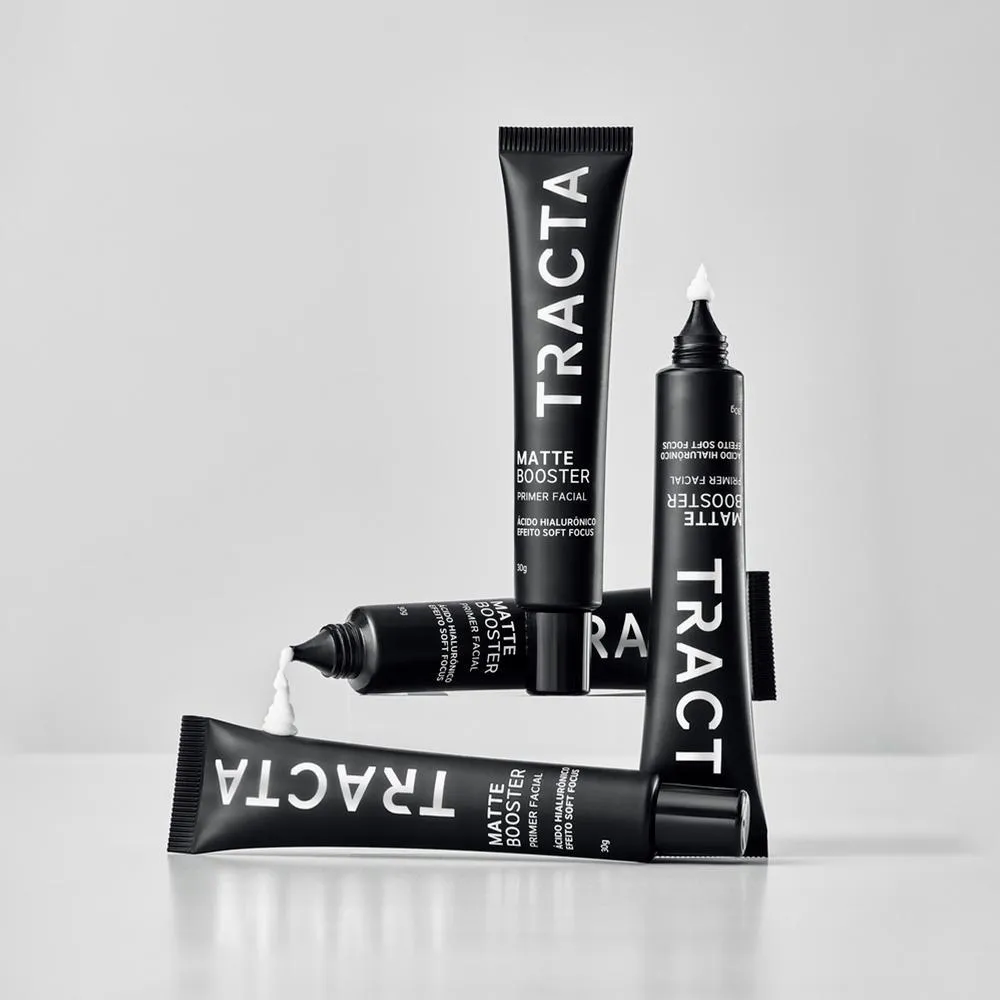 Tracta Matte Booster é um primer matificante. possui extrato de trevo vermelho, controla a oleosidade e reduz o brilho para um acabamento aveludado e ácido hialurônico que mantém a hidratação da Pele. produto hipoalergênico, oftalmologicamente testado e não comedogênico. * RESULTADO:Controla a oleosidade e reduz o brilho. * SUGESTÕES DE USO:1.Aplique sobre a pele limpa e hidratada;