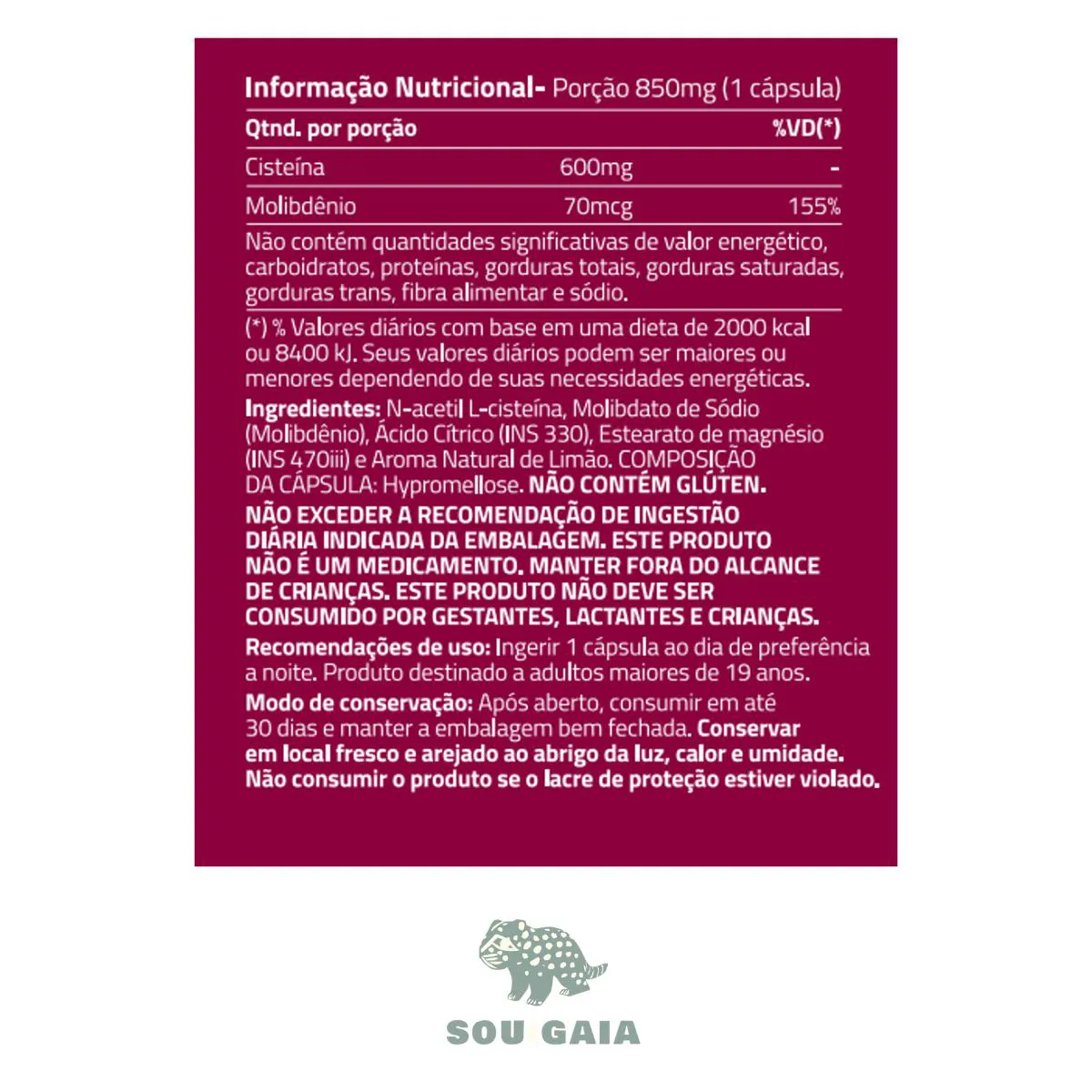 TRUE NAC ACETILCISTEíNA MOLIBDêNIO 100% NATURAL TRUESOURCE