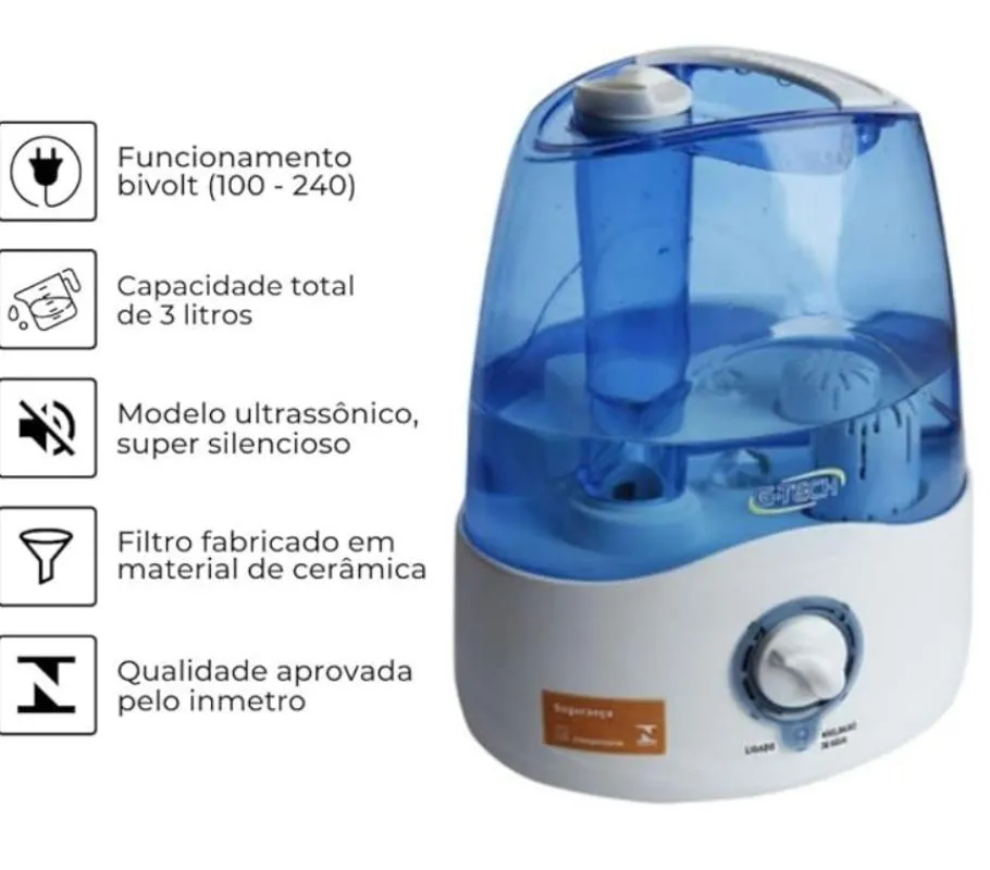 Umidificador ultrassônico Allergy Free Filter 2 G-Tech O umidificador Allergy Free Filter 2 é compacto e leve, mantenha sua Casa com uma finíssima névoa, proporcionando respiração tranquila e agradável sensação de ar fresco.