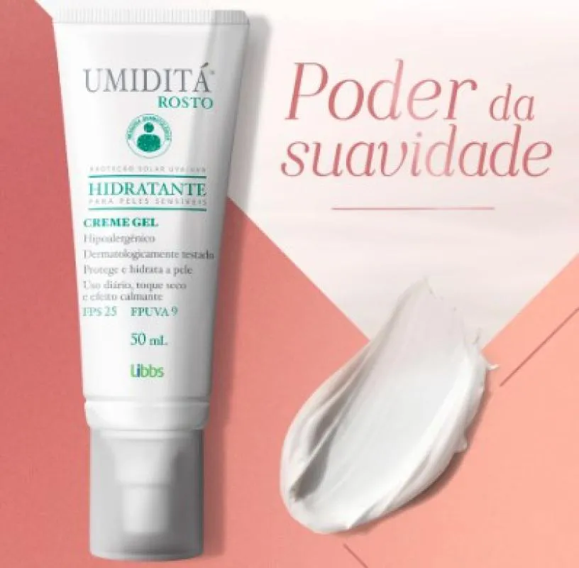 Umiditá Rosto FPS 25 é um hidratante com protetor solar para peles sensíveis ou sensibilizadas. Com ingredientes extraídos da aveia (Colloidal Oatmeal), hidrata a Pele de forma suave e a acalma, protegendo-a contra os agressores externos, como a poluição e a radiação solar.