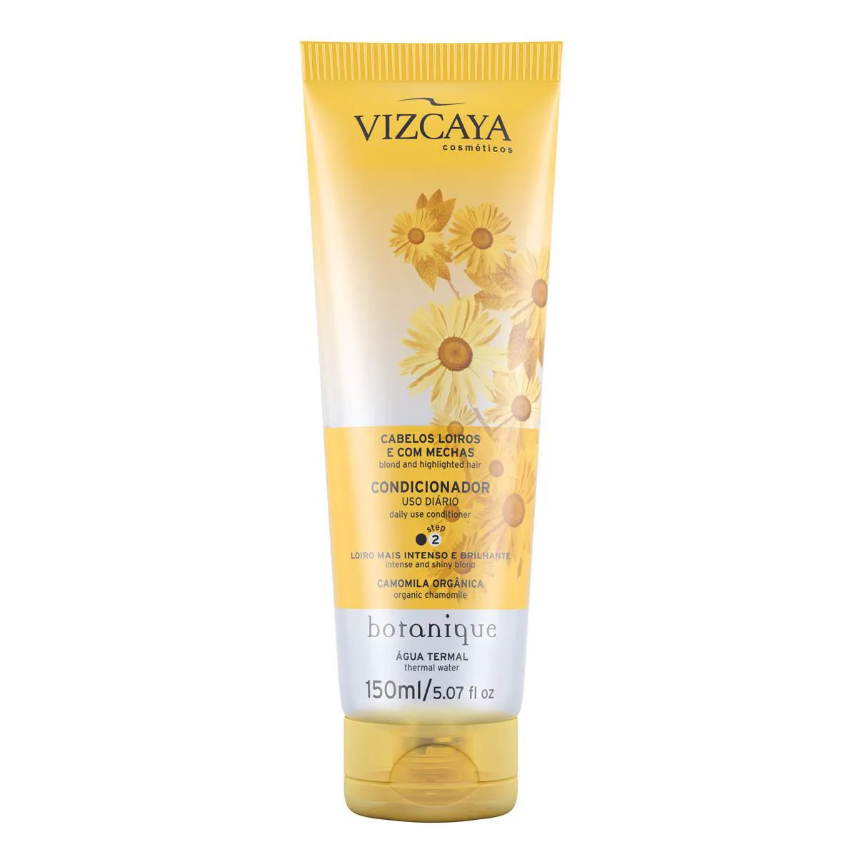 O Condicionador Botanique Vizcaya Loiros e com Mechas é responsável por fechar as cutículas, selando os nutrientes dentro dos fios e dando aos cabelos loiros muito mais maciez, cor e brilho.