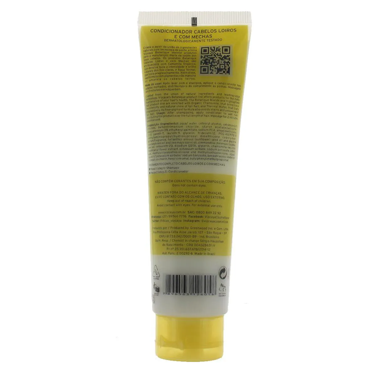 O Condicionador Botanique Vizcaya Loiros e com Mechas é rico em Camomila Orgânica e Água Termal, que nutre, hidrata e deixa os cabelos com brilho intenso. Devolve devolve a luminosidade natural da cor sem pesar nos fios. Sua fórmula é livre de pigmentação e não mancha ou amarela os cabelos claros.