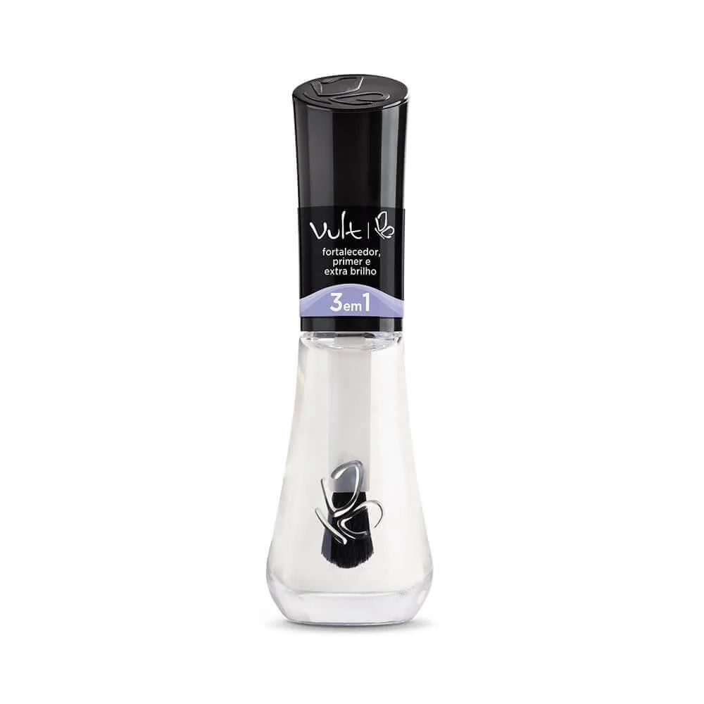 Esmalte Vult 3 em 1: Fortalecedor, Primer e Extra Brilho com 8ml