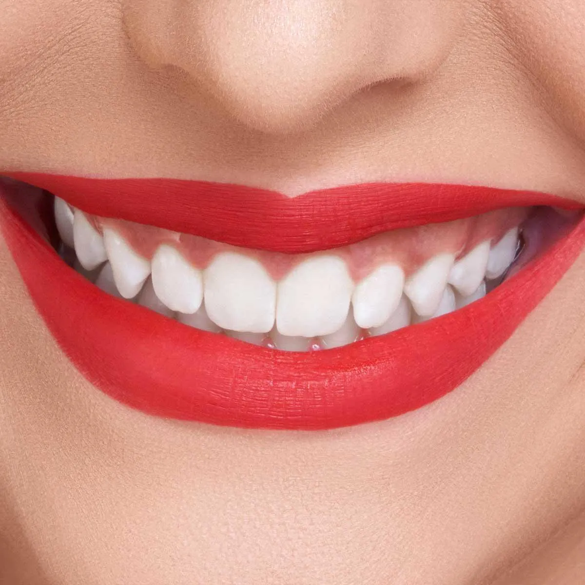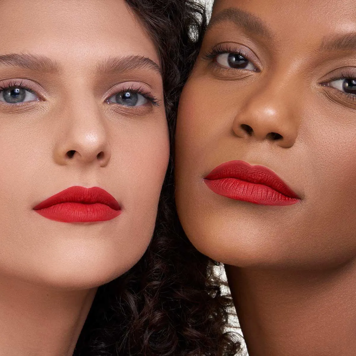 Com o aplicador do batom líquido, contorne os lábios e, em seguida, preencha.